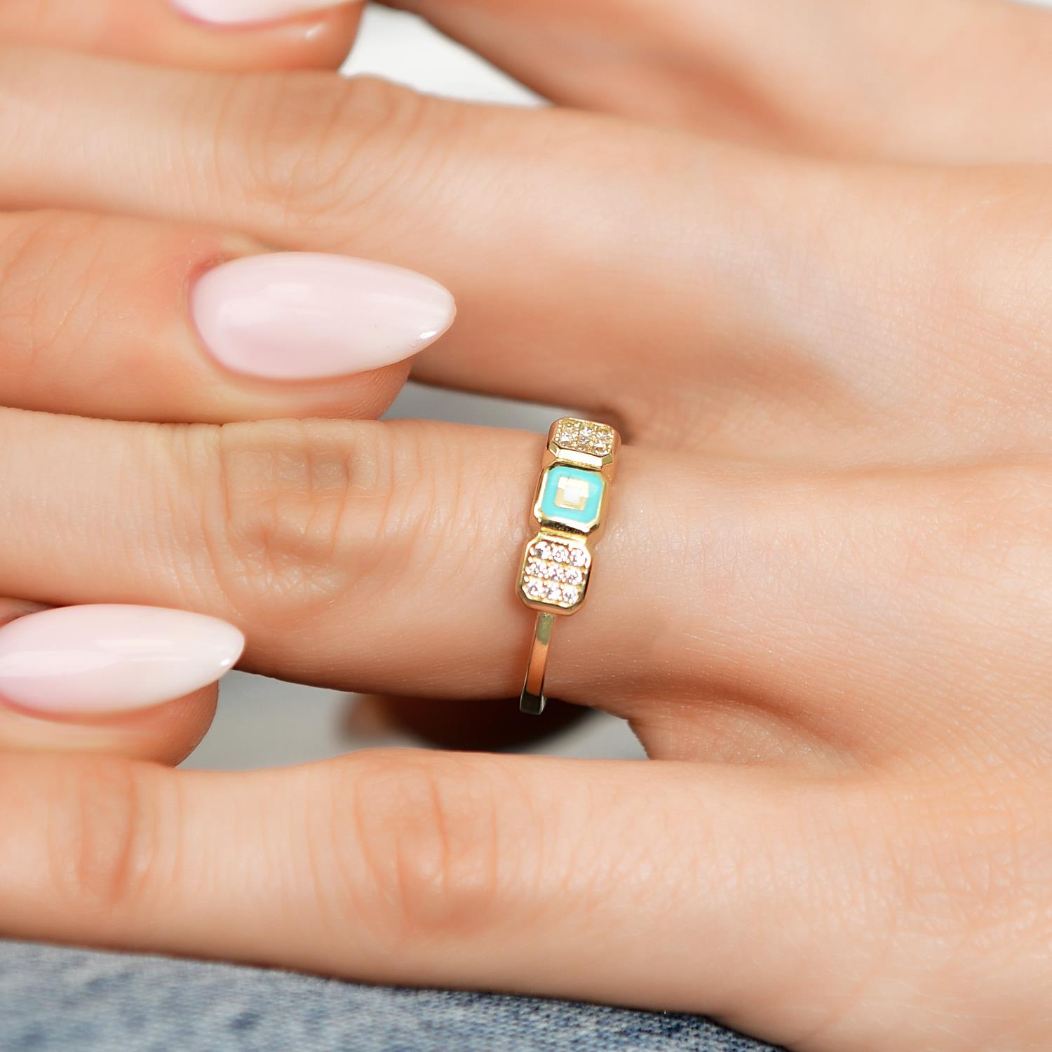 14 Ayar Altın Mine İşlemeli Taşlı Yüzük