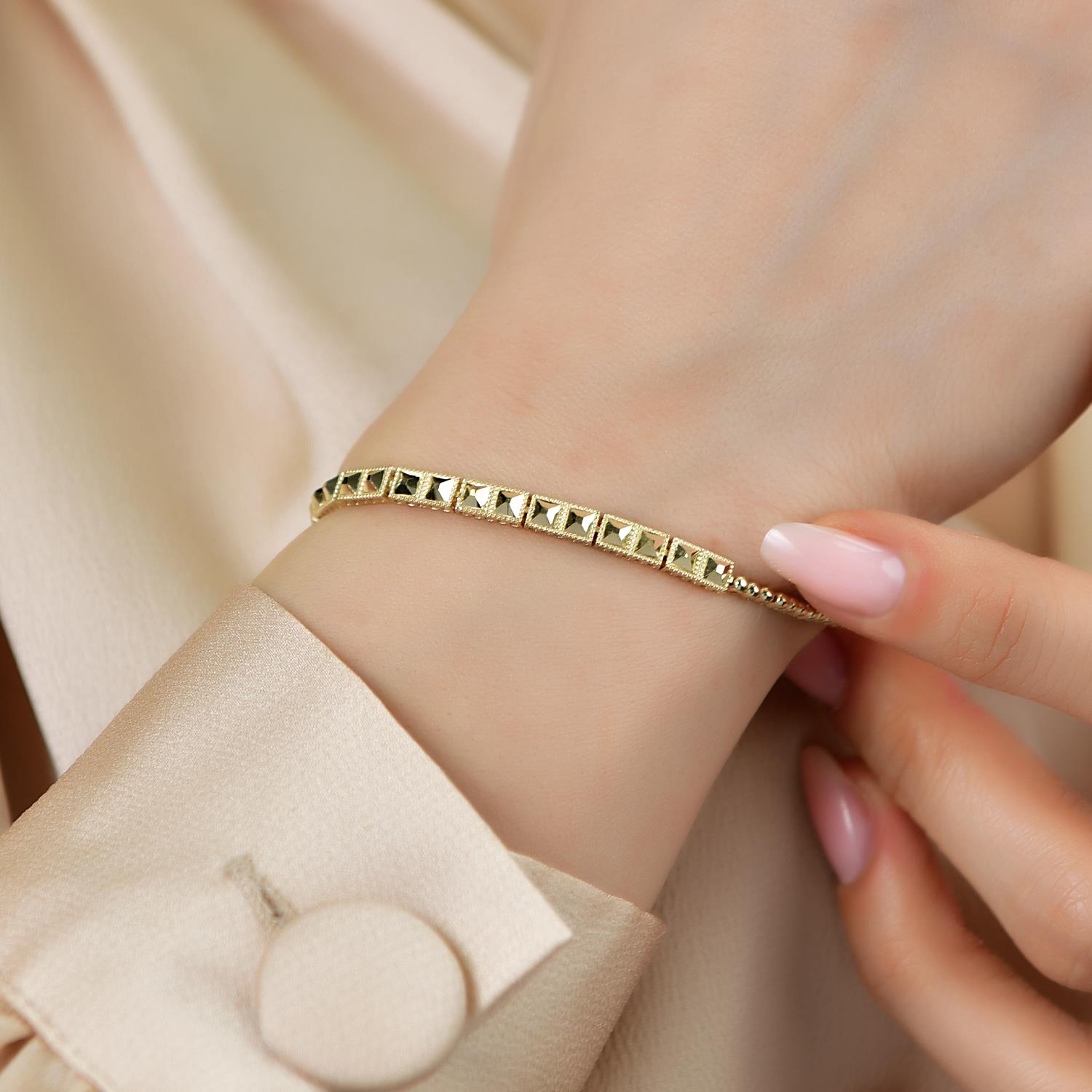 Yaradılışın esas maddesini oluşturan toprak dokulu zirkon taşlı italyan örgü bileklik. Maden: Altın ve Gümüş Renk: Sarı, Lacivert Gramı: Altın (333) 1,56 | Gümüş (925) 5,7 Ayar: 8K (333) , 925 Gümüş Ürün Kodu: CKJB250034