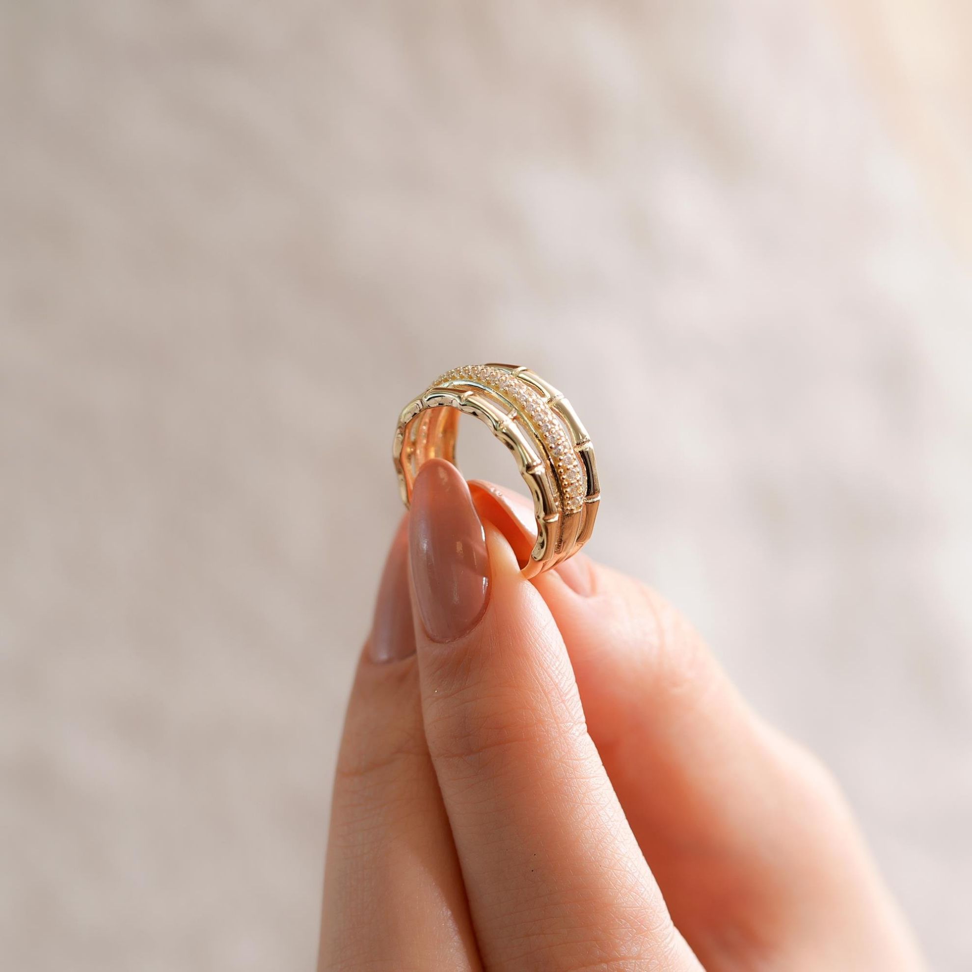 14 Ayar Altın Taş Detaylı Özel Tasarım Yüzük
