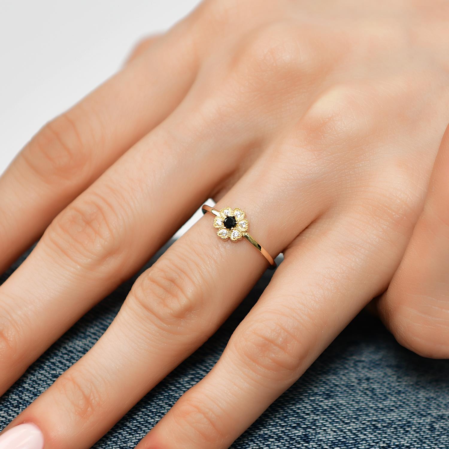 14 Ayar Altın Baget Çiçek Taşlı Yüzük