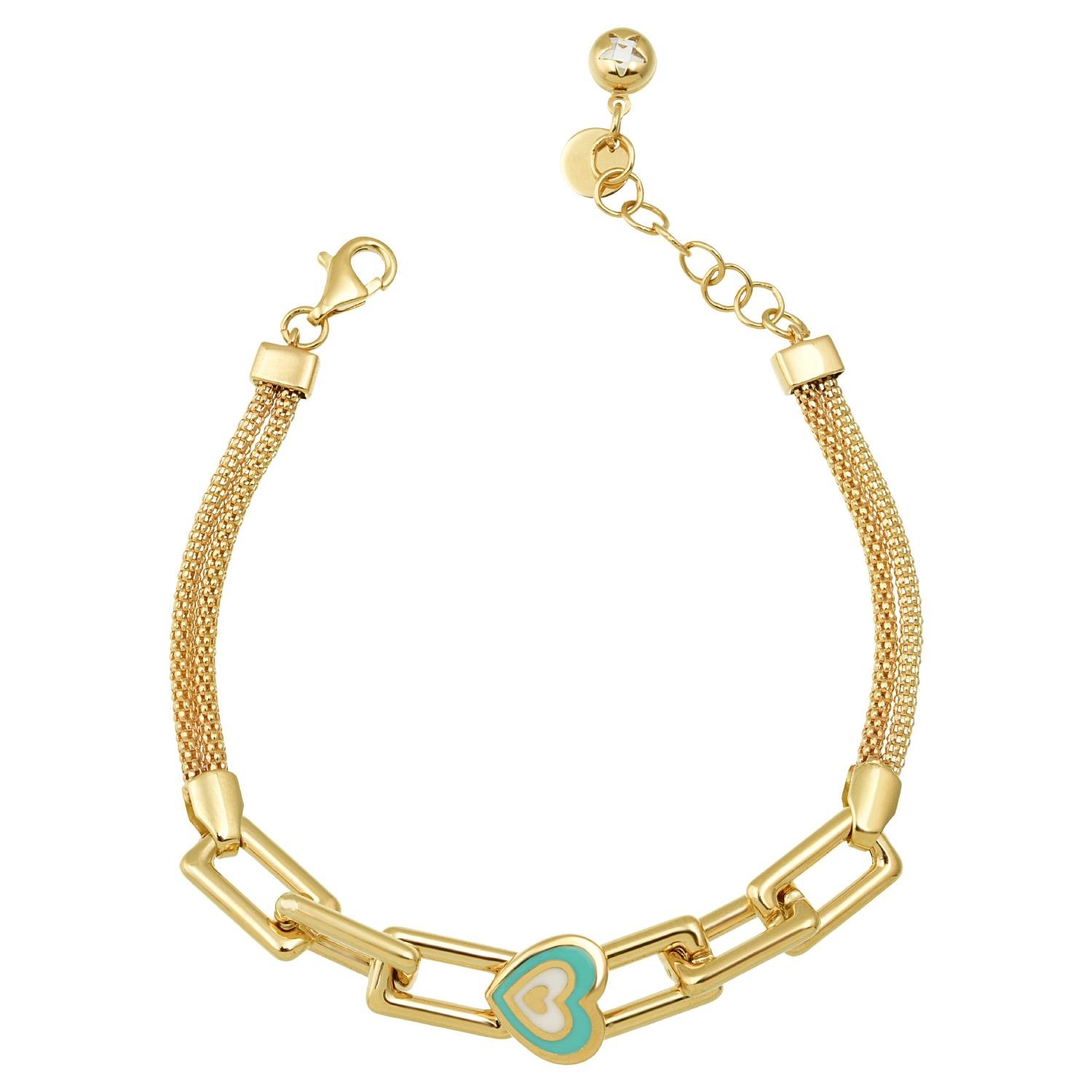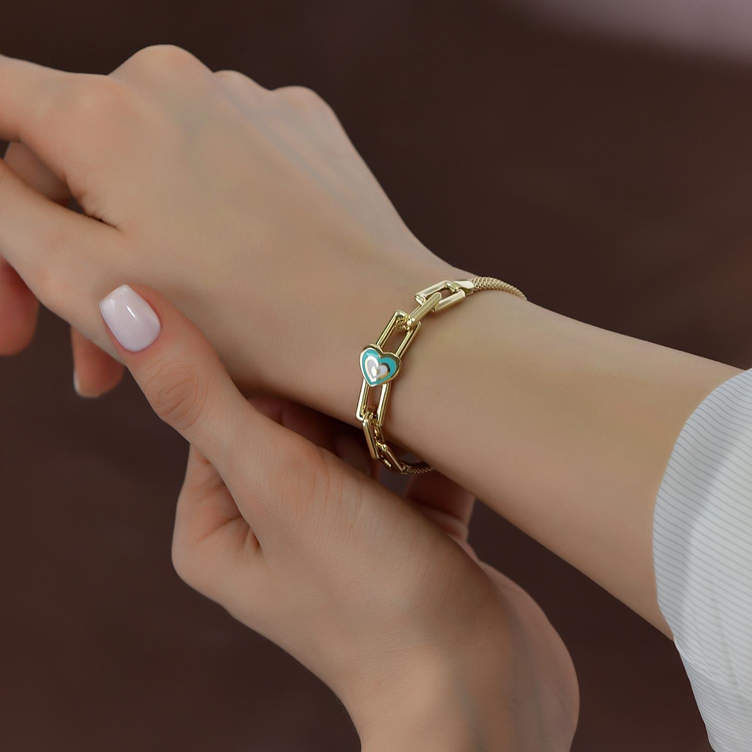 14 Ayar Altın Mineli Kalpli Zincir Bileklik