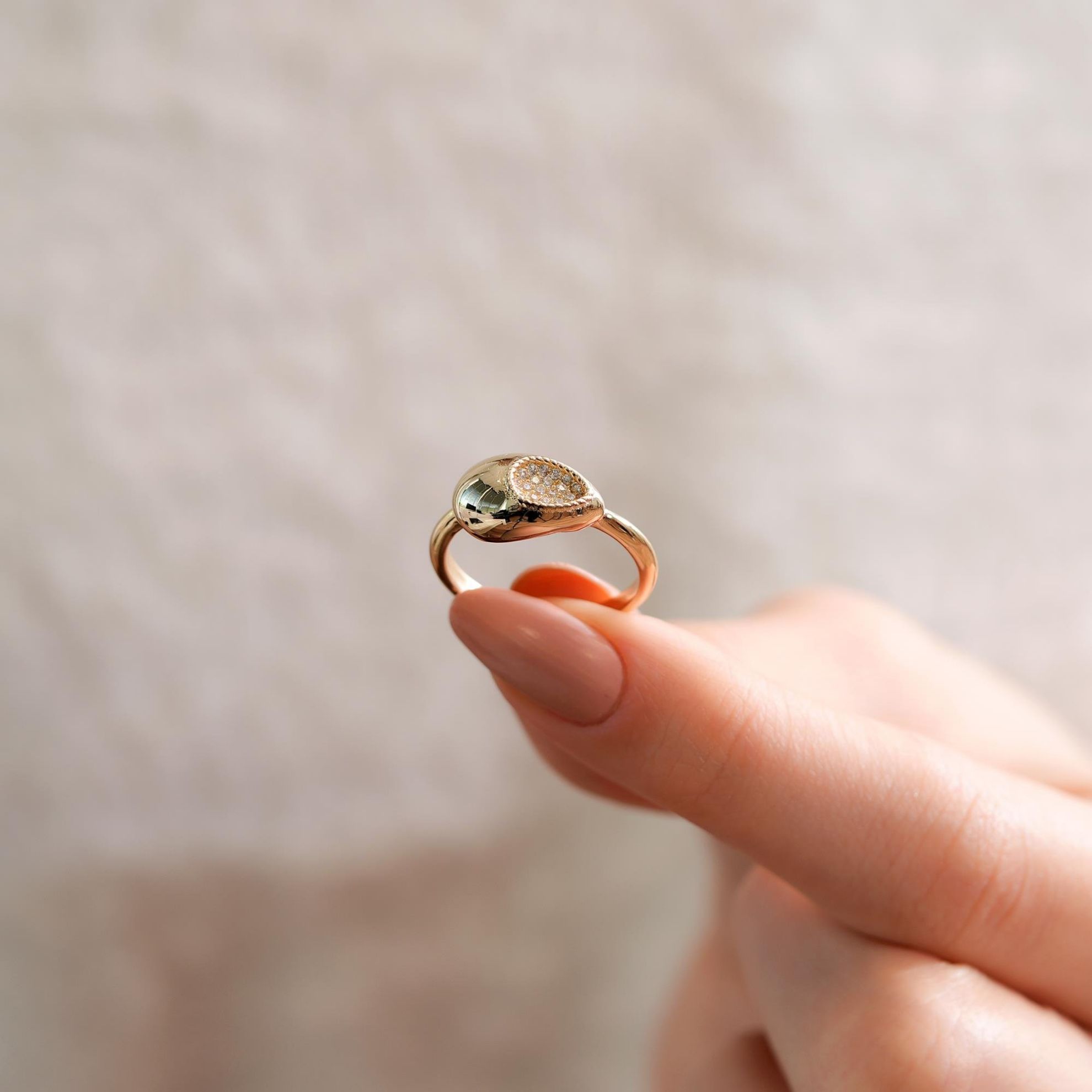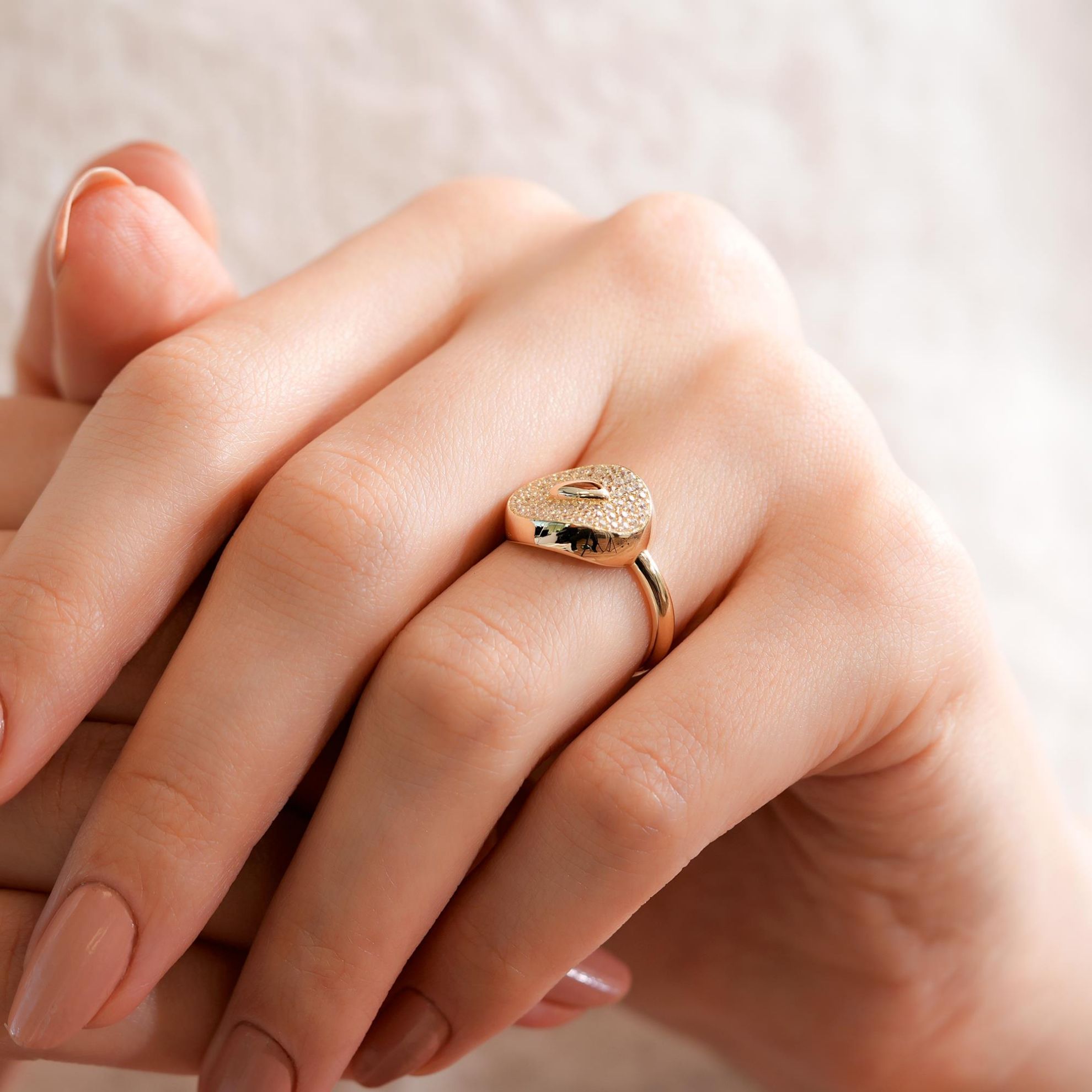 14 Ayar Damla Taş Detaylı Altın Yüzük