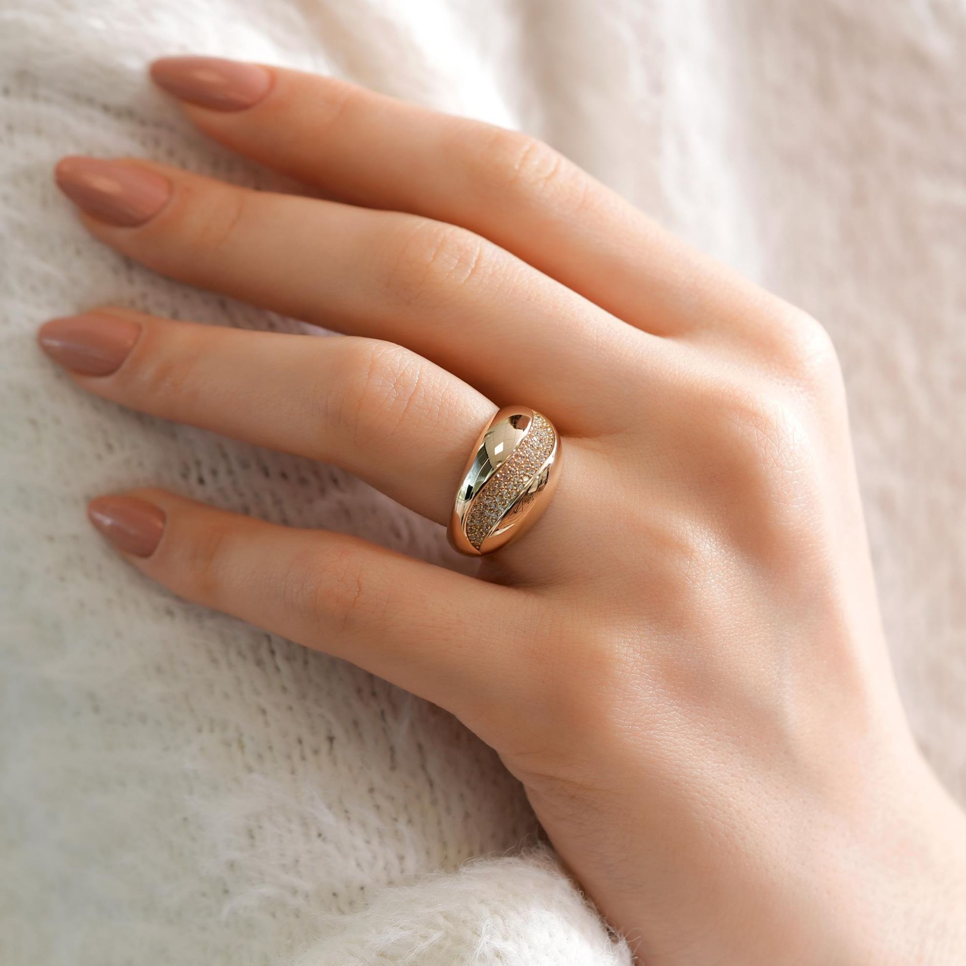 14 Ayar Taş Detaylı Altın Tasarım Yüzük