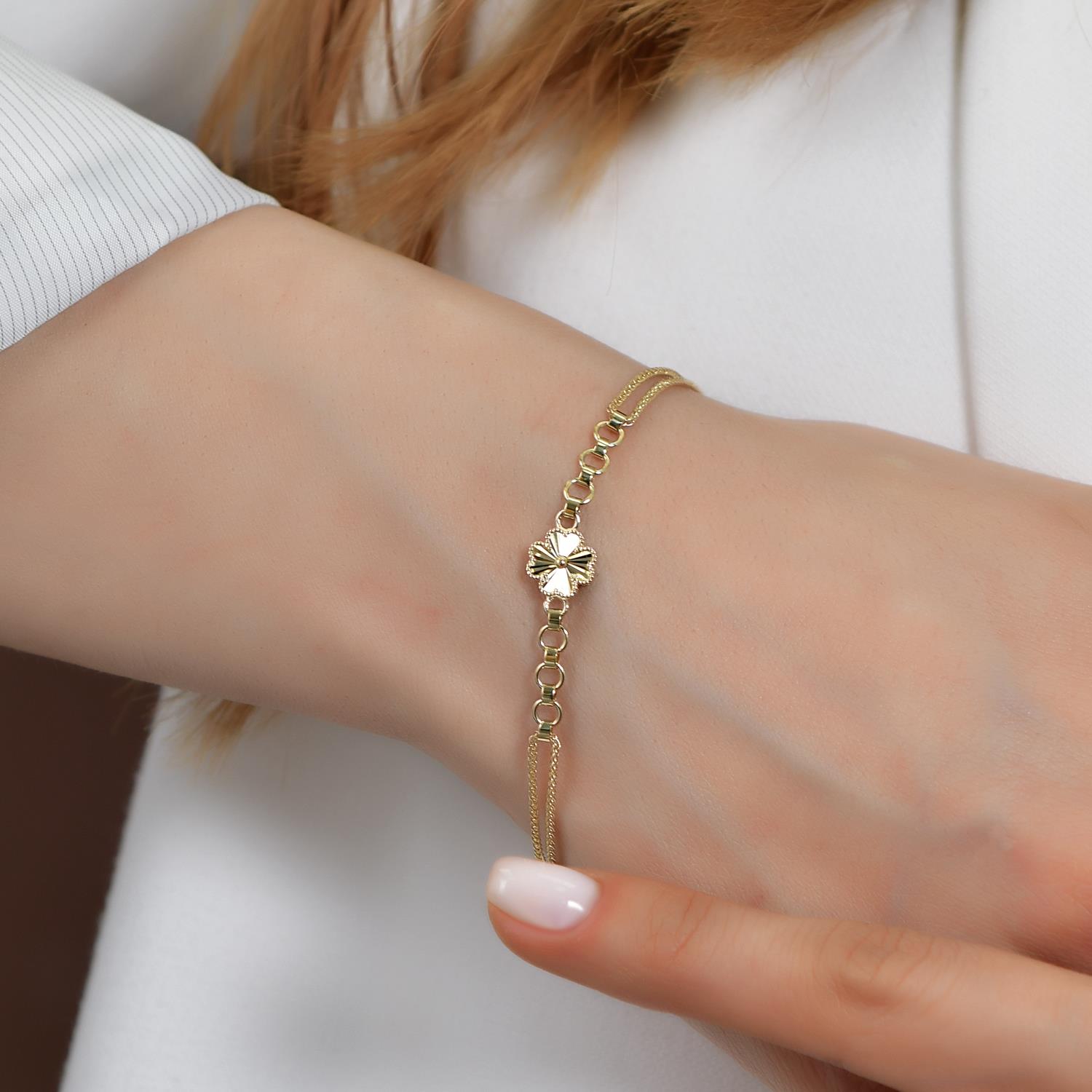 14 Ayar Altın Kalem İşçilikli Yonca Bileklik