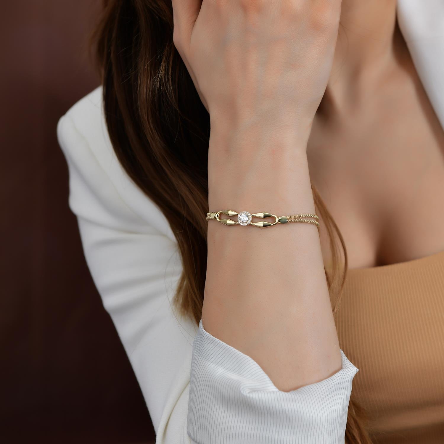 14 Ayar Altın Zincirli Tektaş Bileklik
