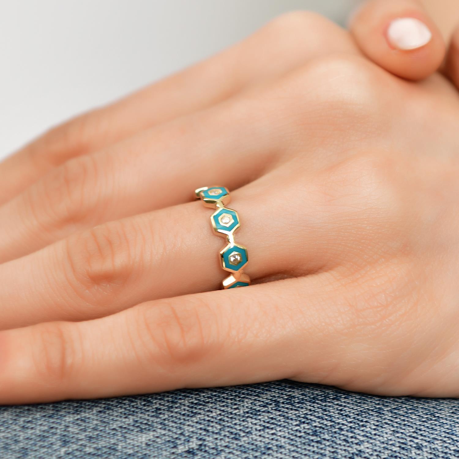 14 Ayar Altın Mineli Altıgen Taşlı Yüzük