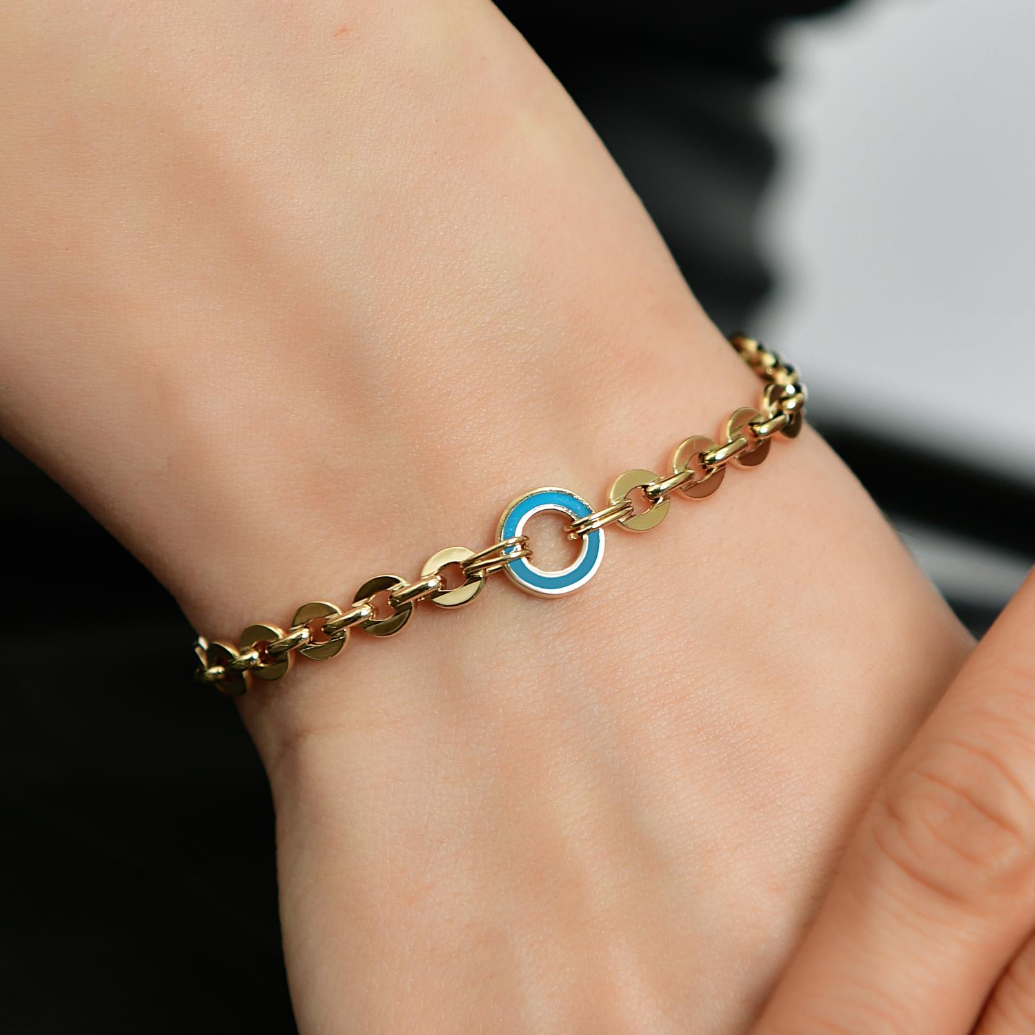 14 Ayar Altın Halka Mineli Zincir Bileklik