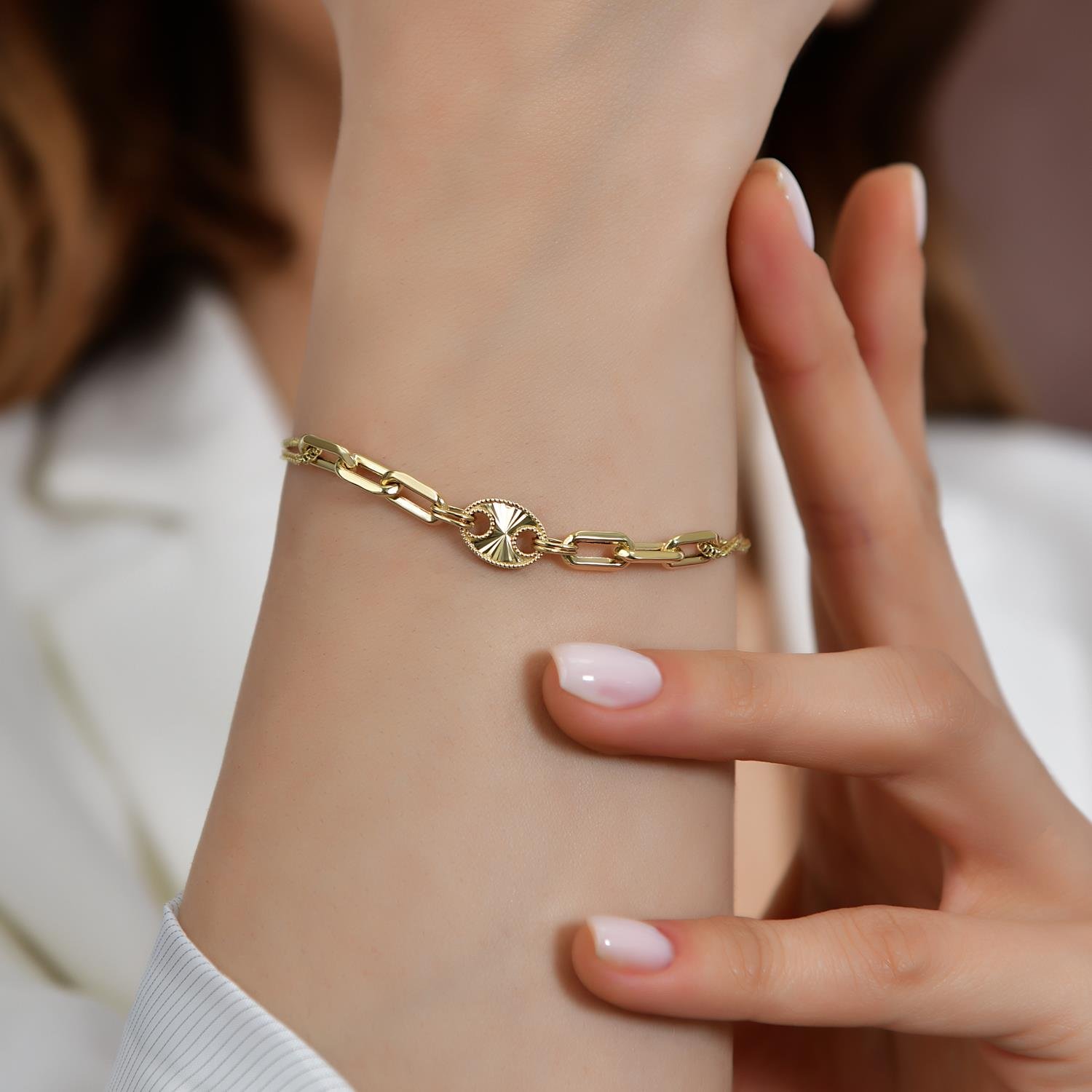 Maden: Altın Renk: Sarı Gramı: 4,94 gr Ayar: 14K (585) Ürün Kodu: BGA0260 Ürünlerimizin tamamı el yapımı olduğu için belirtilen ağırlık (+/-) %5 sapma oluşabilmektedir.