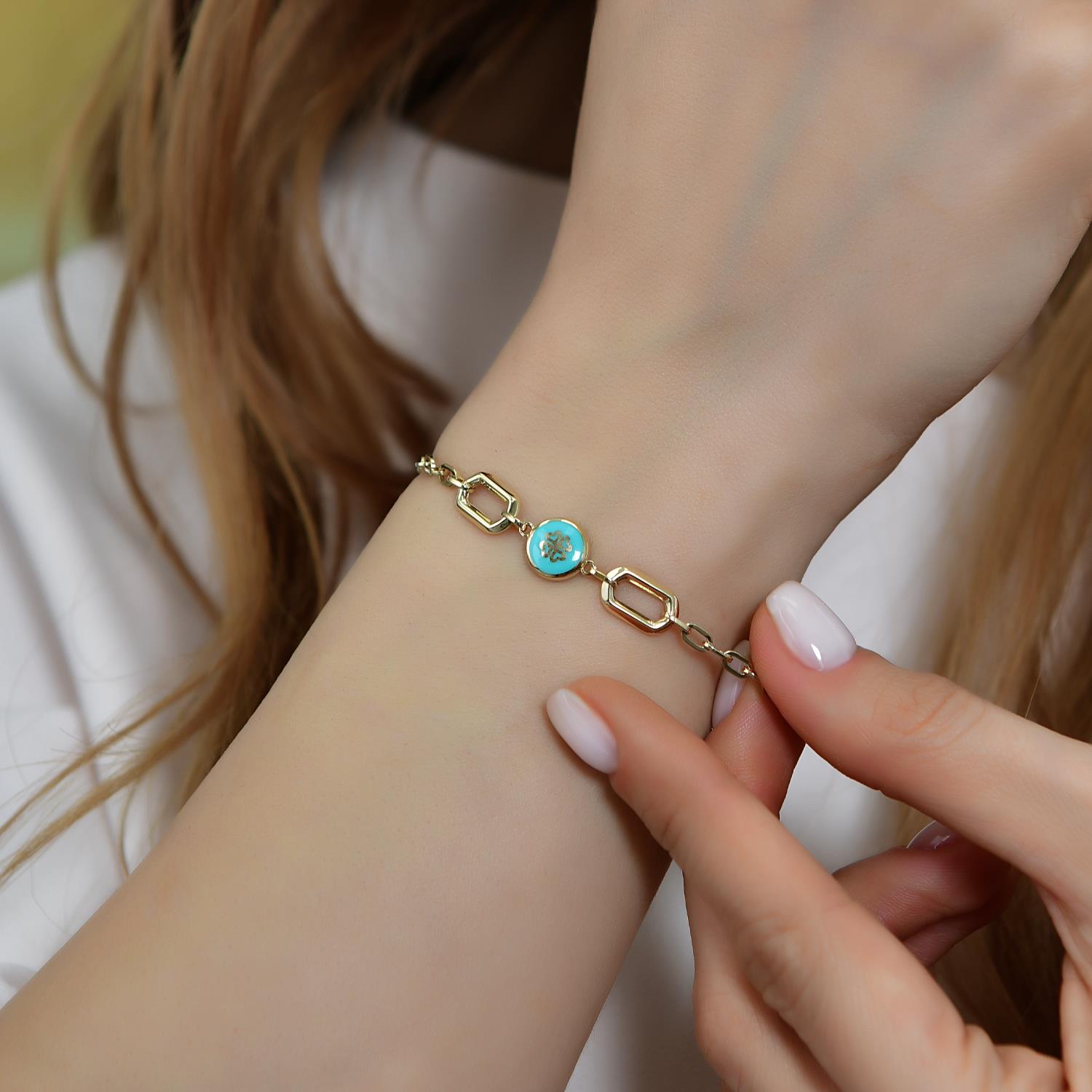 Altın Küçük Toplu Kırmızı Ipli Bileklik
