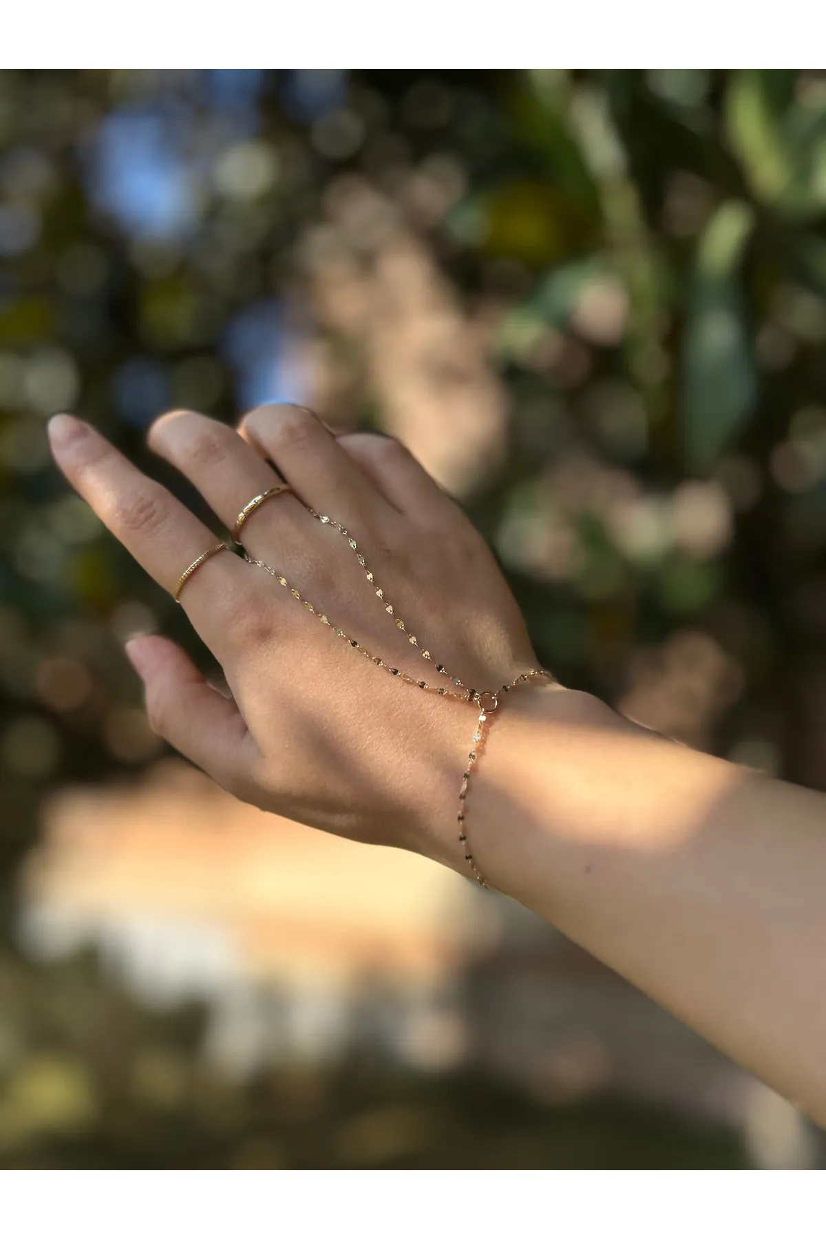Maden: Altın Renk: Sarı Gramı:1.09gr Ayar: 14K (585) Ürün Kodu: S2452241 Bileklik tarafı 17.5 cm, halka detaydan parmağa kadar olan kısmı ise 9 cm uzunluğunda tasarlanmıştır. Ürünlerimizin tamamı el yapımı olduğu için belirtilen ağırlık (+/-) %5 sapma oluşabilmektedir.