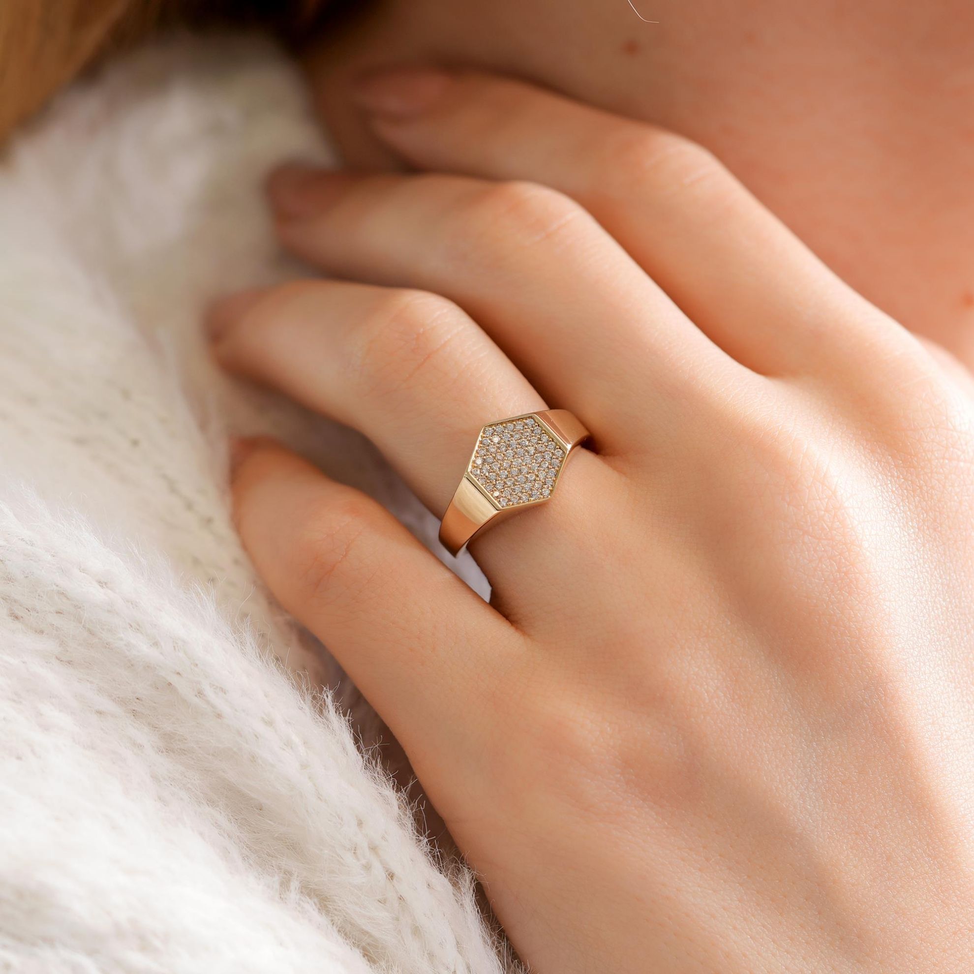 Zarif Taş İşlemeli Altın Yüzük 14 Ayar
