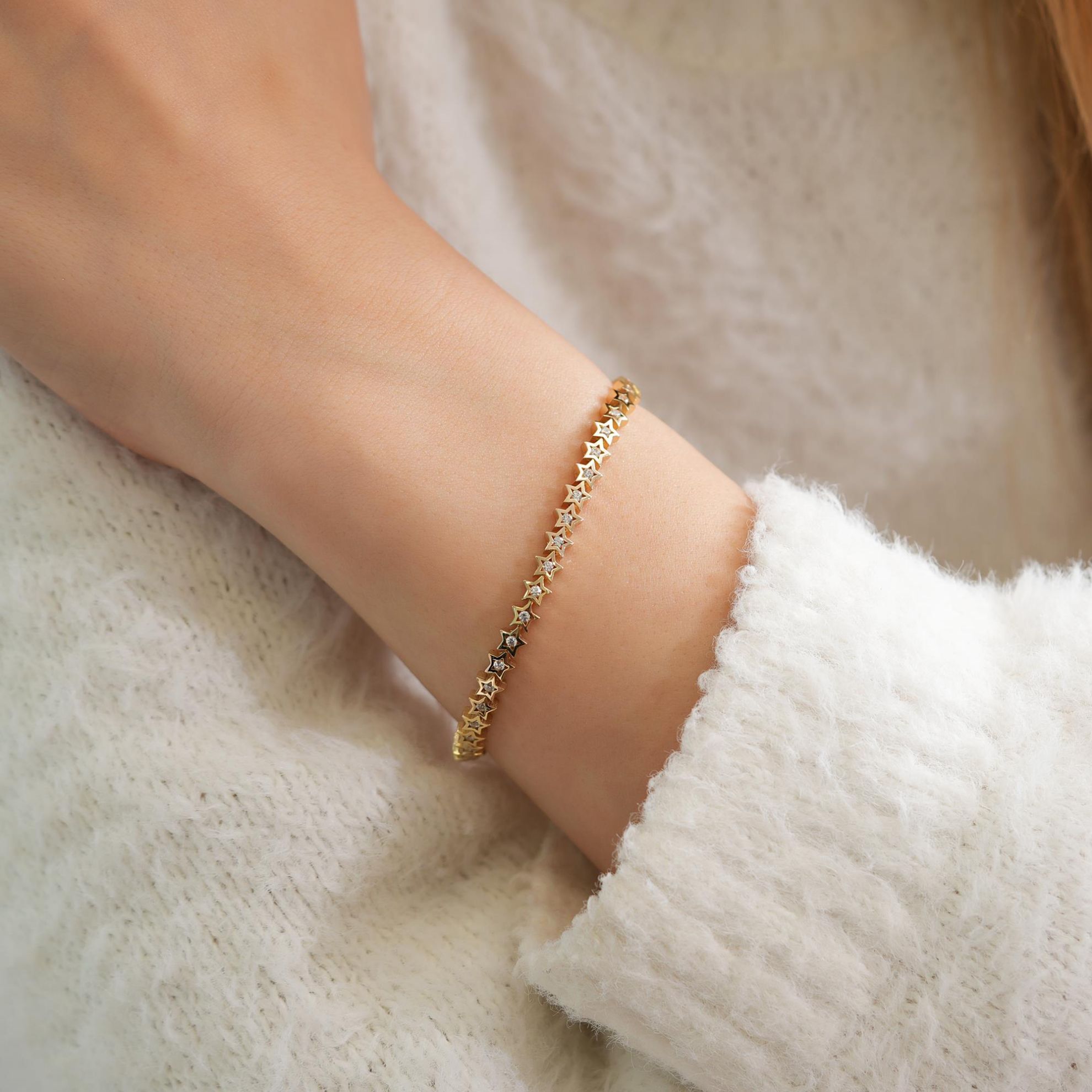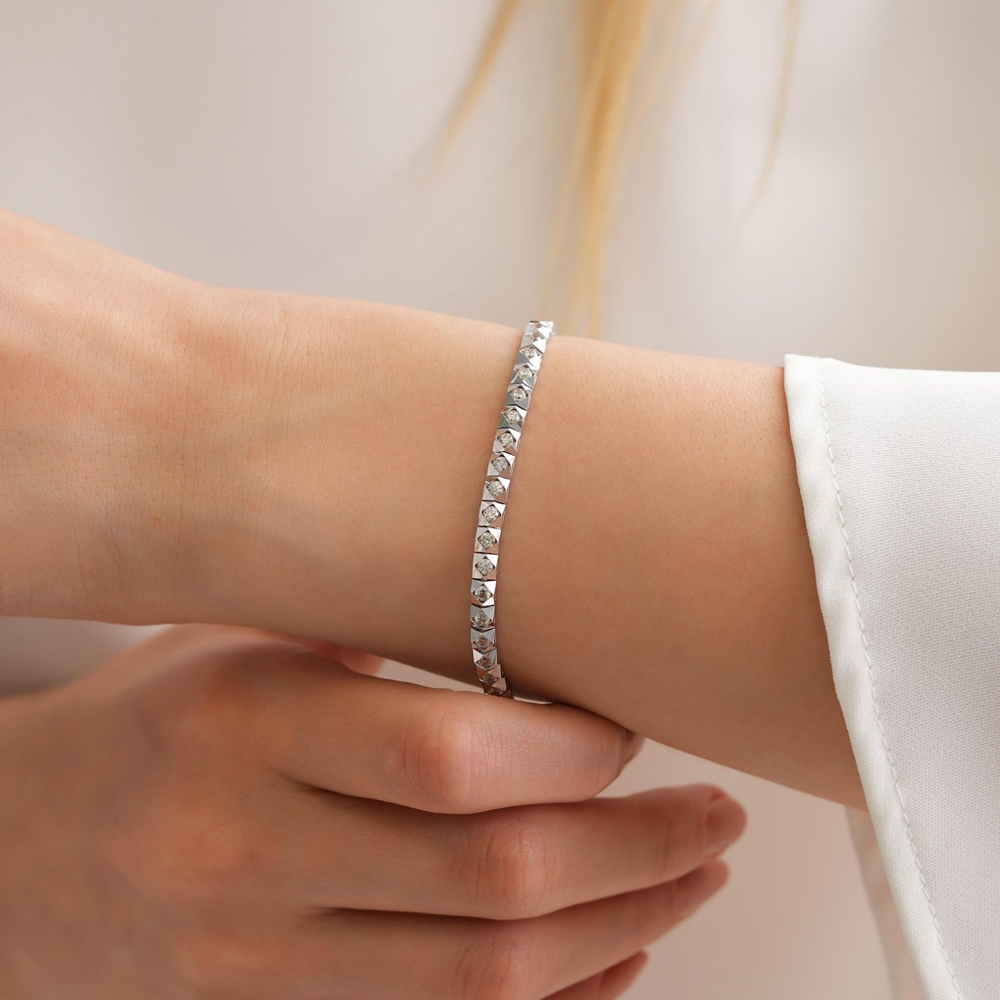 14 Ayar Beyaz Altın Taşlı Bileklik
