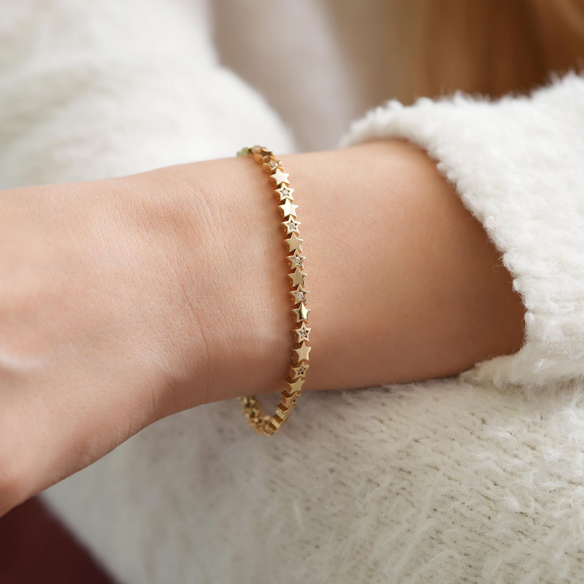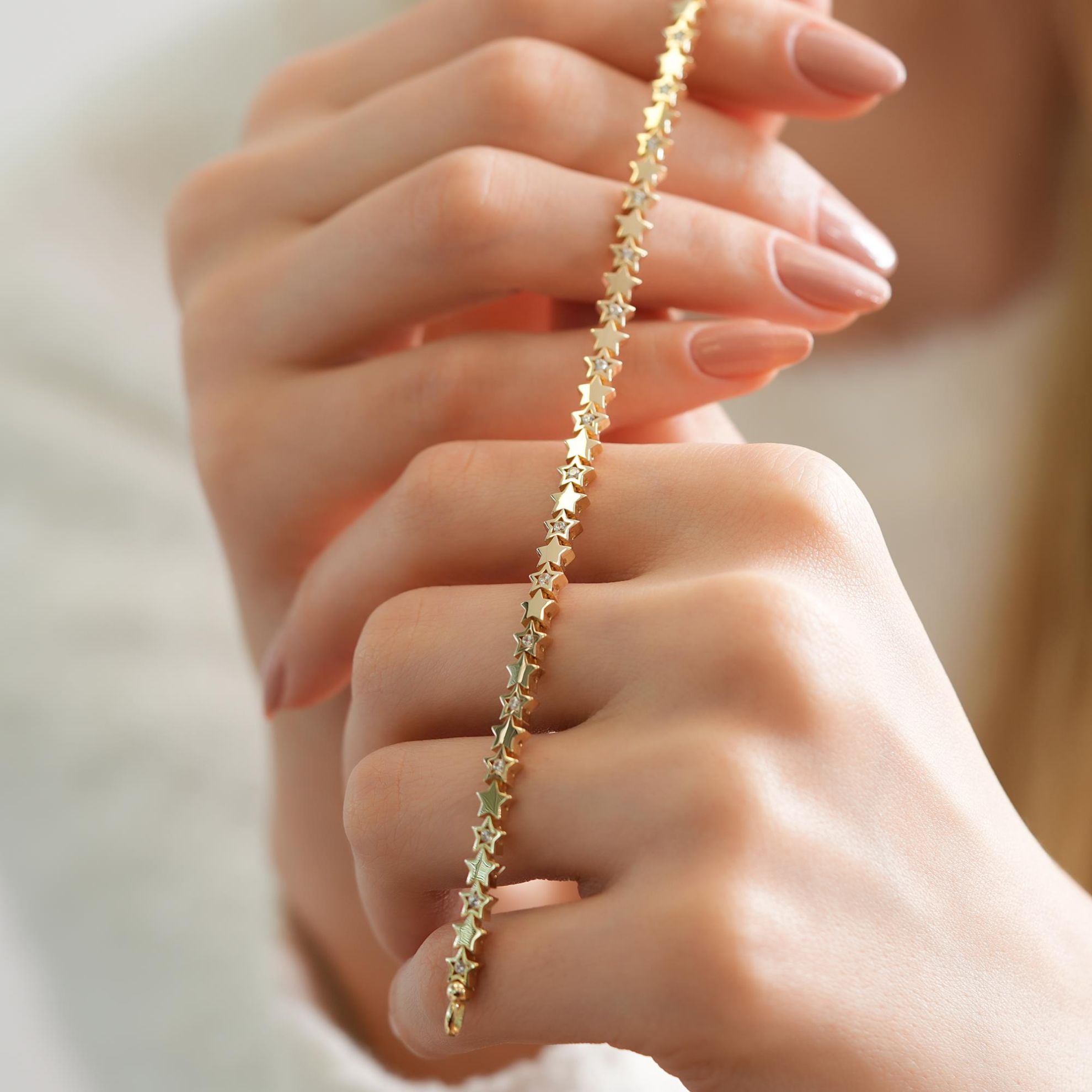 14 Ayar Altın Yıldızlı Tasarım Bileklik