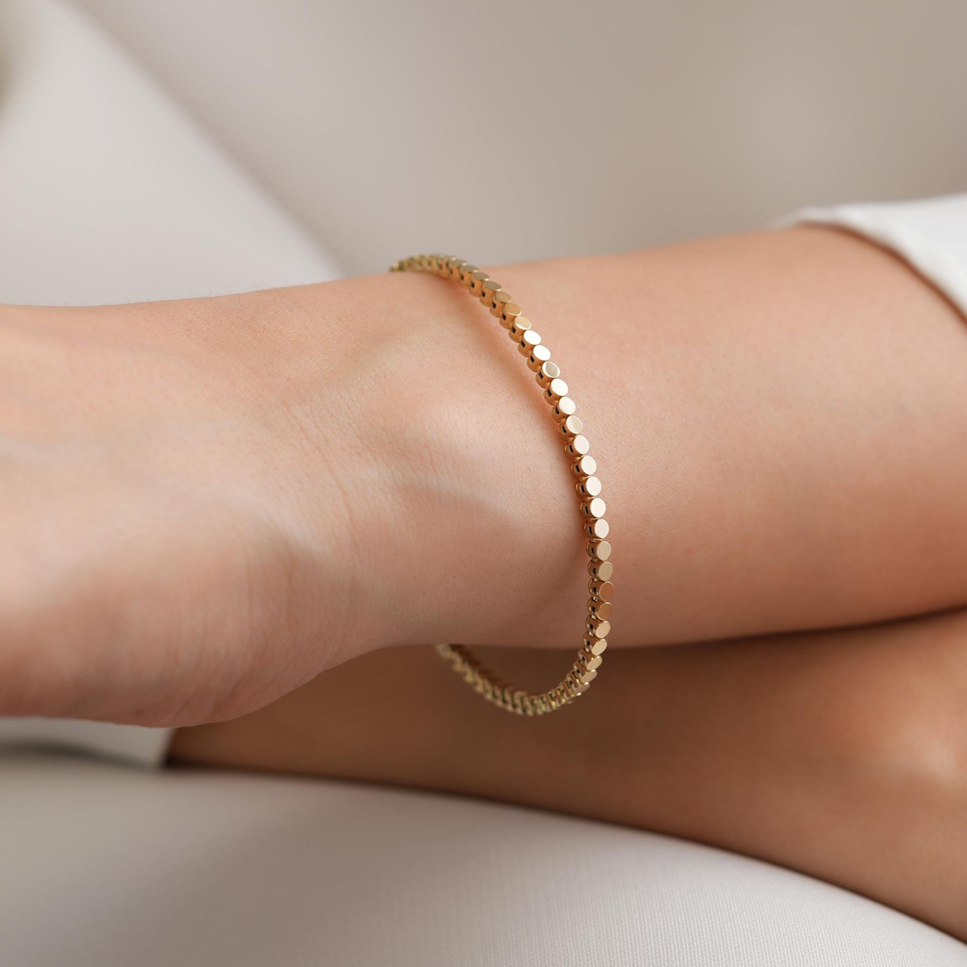 Maden: Altın Renk: Sarı Gramı: 6,81 gr Ayar: 14K (585) Ürünlerimizin tamamı el yapımı olduğu için belirtilen ağırlık (+/-) %5 sapma oluşabilmektedir.