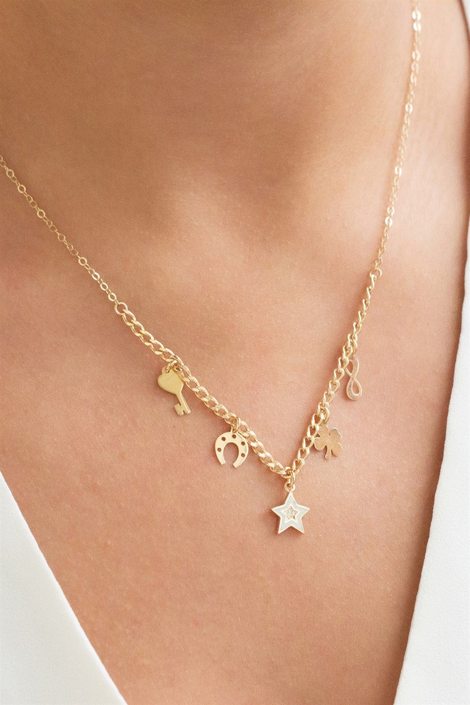 Zarif Şans Motifli Altın Kolye