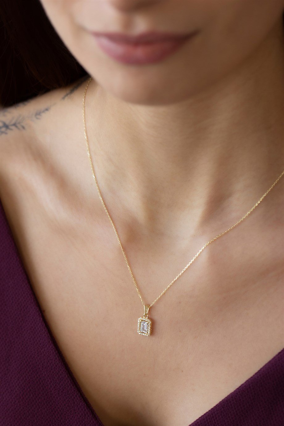 Şık Altın Baget Taşlı Kolye