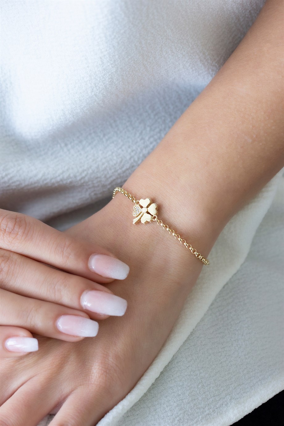 Zarif Kalp ve Yonca Detaylı Altın Bileklik