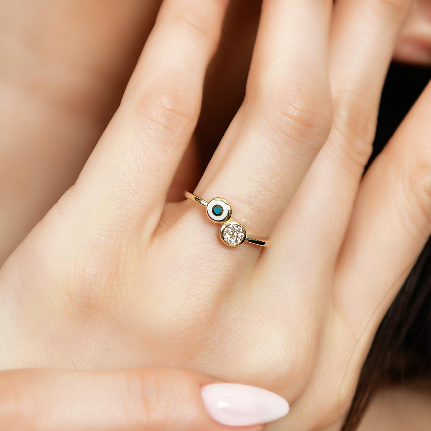 14 Ayar Altın Mineli Taşlı Nazar Yüzük