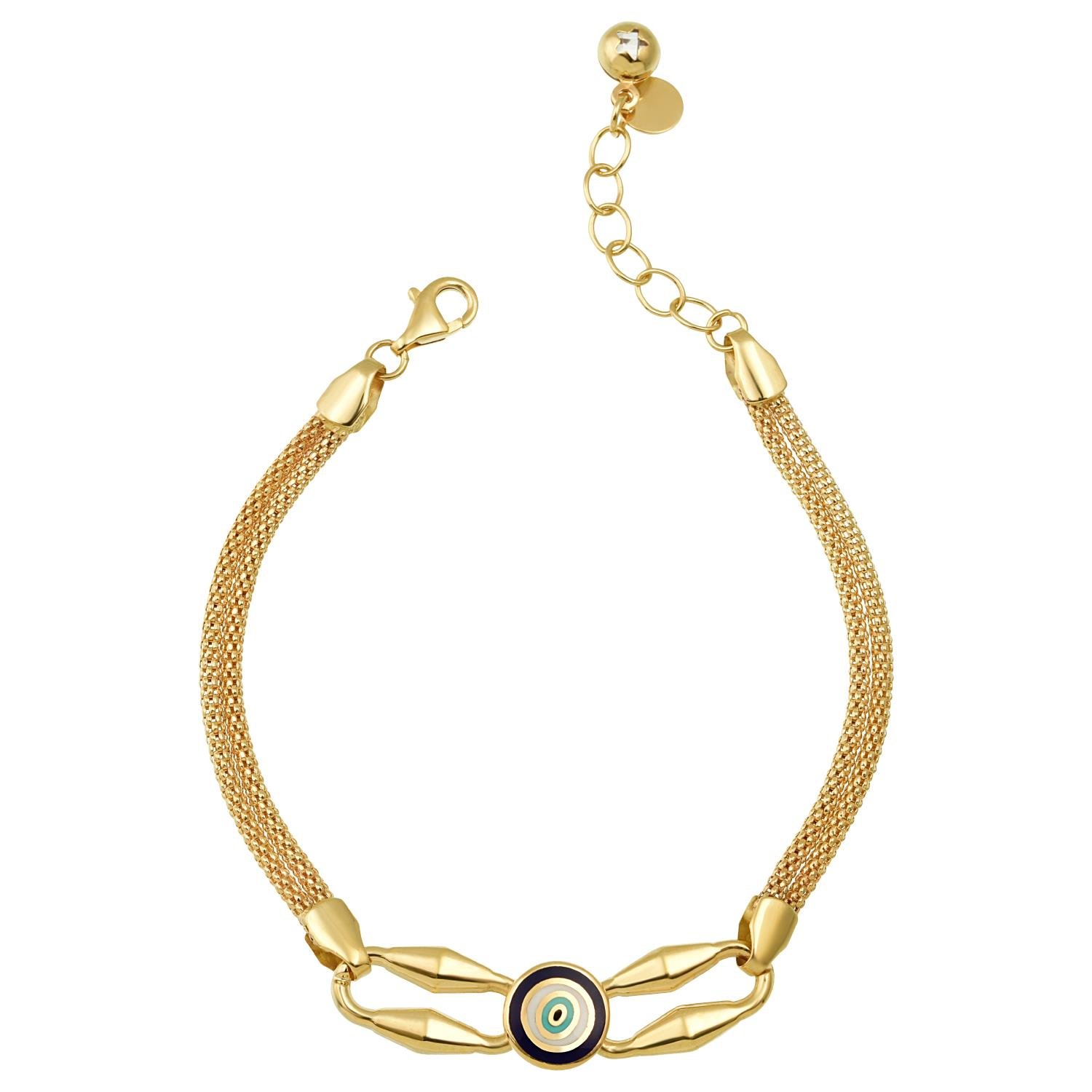 14 Ayar Altın Mineli Nazar Zincirli Bileklik