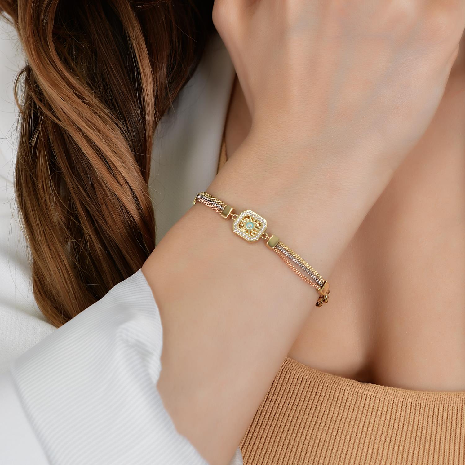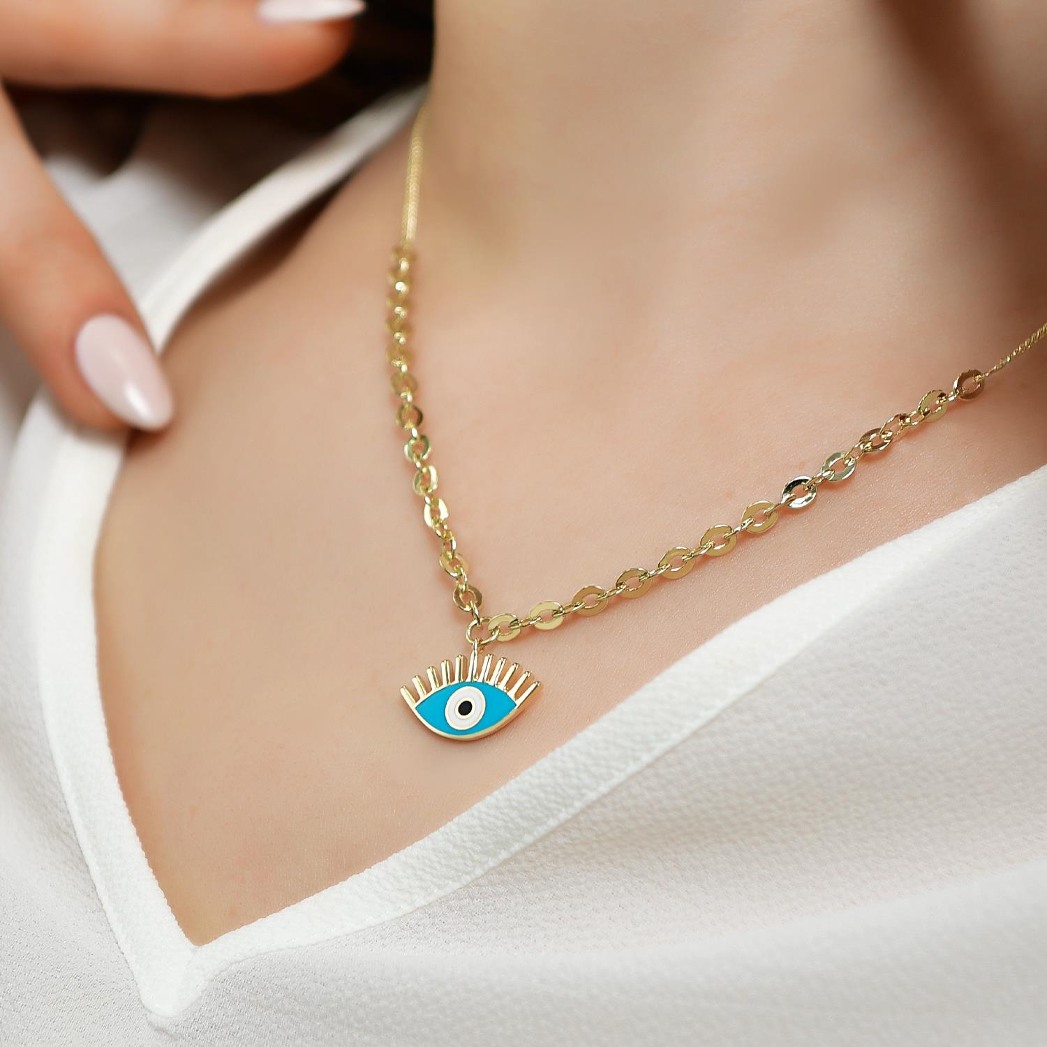 14 Ayar Altın Mavi Mineli Göz Kolye
