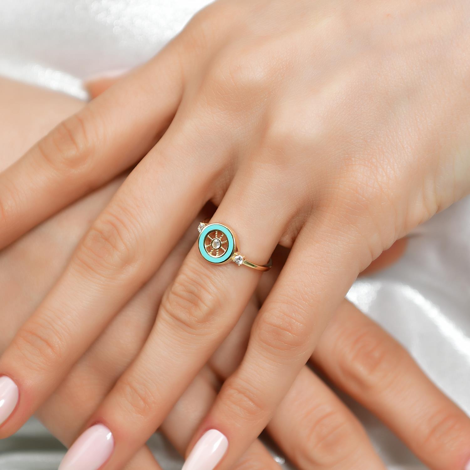 14 Ayar Altın Sallantılı Taşlı Fildişi Küpe
