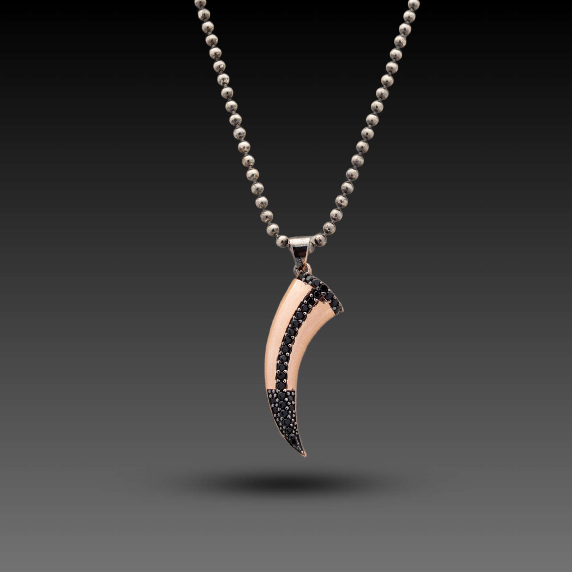 Mezopotamya, Avrupa, Anadolu ve Eski Mısırda bereket, koruyuculuk ve güç sembolü olarak erkekte özdeşleşen boynuzz figür kolye. Maden: Altın ve Gümüş Renk: Sarı, Siyah Gramı: Altın (333) 5,25 | Gümüş (925) 7,81 Ayar: 8K (333) , 925 Gümüş Ürün Kodu: CKJN250042